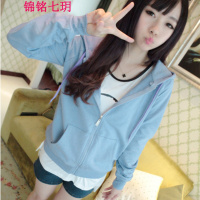 工厂 秋季新款拉链帽衫女士纯色卫衣针织衫连帽开衫宽松外套
