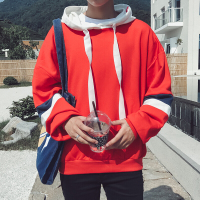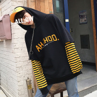 YANXUTurned易冧ounng连帽卫衣男秋季欧美街头拼接水洗做旧设计帽衫潮