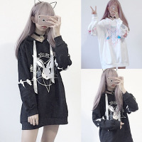YANXU国潮中性风圆领卫衣ins青少年宽松休闲腰果花bf拼接长袖上衣