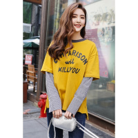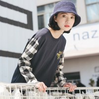 YANXU新款美式复古拼接圆领卫衣男女潮牌宽松情侣休闲长袖打底刺衫