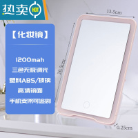 敬平led化妆镜带灯便携美妆补光学生女ins梳妆台家用方形桌面台式镜子 标准款(粉色) 20.5*13.5*2便携式用镜