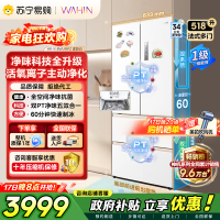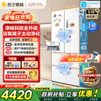 [美的出品]华凌神机机皇518 自动制冰双系统双循环 60cm超薄零嵌法式多门家用电冰箱 HR-518WUFIPZ雾隐白