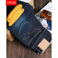 有衣有靠牛仔裤加绒男士2017秋冬新款加厚修身牛仔裤青年潮流猫须保暖牛仔长裤大码裤子深蓝