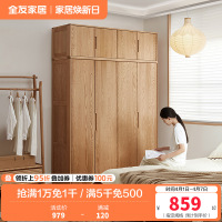 全友家居2024新款北欧风红橡木衣柜卧室半定制组合实木衣橱