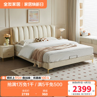 全友家居网红轻奢风琴键真皮床卧室双人头层牛皮软包大床