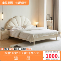 全友家居奶油风简约花瓣生态科技皮软包床屏双人床实木高脚卧室家具