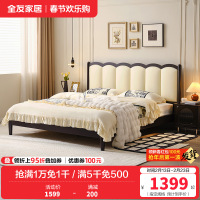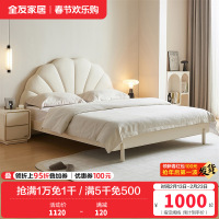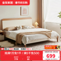 全友家居 板式床奶油风现代简约主卧室实木高脚双人大床