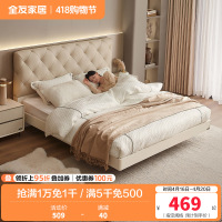 全友家居现代轻奢软靠 实木框架科技皮艺大床 鎏金点缀精致主卧框架床