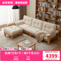 全友家居2024年新款原木风云朵沙发客厅直排红橡木布艺沙发