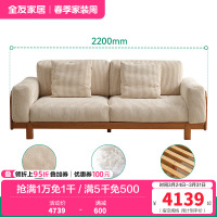 全友家居北欧原木风沙发客厅家具直排红橡木实木布艺沙发