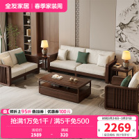 全友家居实木沙发新中式客厅家具轻奢大气可拆洗软包直排式组合沙发
