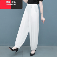 YIBUSHENG季新款冰丝大码休闲裤女薄款宽松印花束脚哈伦裤显瘦九分灯笼裤