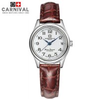正品嘉年华Carnival瑞士品牌手表新款防水带日历全自动机械表 女士女表镶钻时尚气质简约腕表8062L