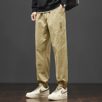 立体拼接休闲裤男 卡其色抽绳束脚裤 春夏薄款 小标装饰 透气长裤