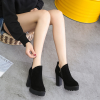 2017新款2017秋季新款韩版短靴女高跟粗跟女靴皮靴及踝靴裸靴百搭女鞋子潮