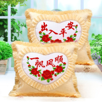 创意简单纯棉十字绣抱枕汽车客厅沙发卧室出入平安一对枕头套件_5