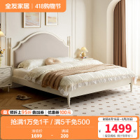 全友家居法式田园奶油风卧室涟漪床柔美弧线生态科技皮软靠床屏双人床板式床家具