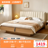 全友家居皮艺床简约现代软包床屏原木风小户型卧室收纳储物双人床