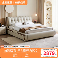 全友家居现代简约真皮软包床屏2024新款主卧高端大气双人床