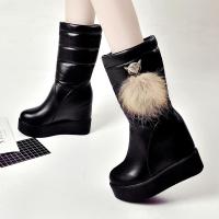 靴子女秋冬款2017新款百搭韩版学生中筒靴高跟坡跟内增高毛毛女鞋