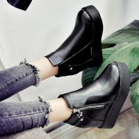 2017冬季新款内增高女鞋8cm坡跟厚底复古英伦风女鞋保暖加绒棉鞋