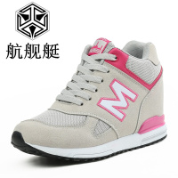 高帮鞋女韩版学生百搭2017新款内增高女鞋坡跟休闲运动鞋学院单鞋