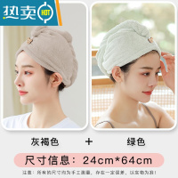 敬平干发帽吸水速干女可爱包头巾擦头毛巾裹头巾2021新款洗头器 纯色2条(单层加厚)灰褐色+绿色