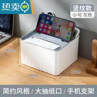 敬平多功能纸巾盒客厅茶几纸巾遥控器收纳盒卧室纸抽盒家用客厅抽纸盒 [竖纹款]小号灰白