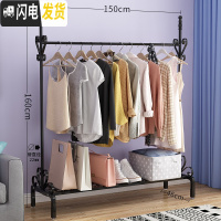 三维工匠晾衣架落地折叠卧室内挂衣架欧式简易晾衣杆家用单杆式阳台晒衣架 板面款150cm-黑 大