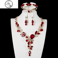 水晶宝石首饰套装女轻奢锁骨项链耳环手链戒指四件套礼服宴会配饰 JiMi