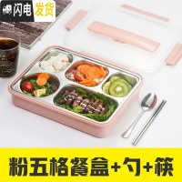 三维工匠不锈钢饭盒学生防烫带盖韩国 食堂餐盘汤碗304分格网红饭盒上班族 粉五格+勺筷