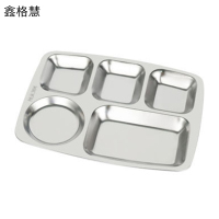 鑫格慧 304不锈钢食堂分格饭盘快餐盘 大圆五格 个