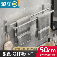 敬平免打孔毛巾架卫生间浴巾架挂钩浴室挂架厕所毛巾杆挂杆壁挂置物架 优雅银50cm-双杆浴室置物架