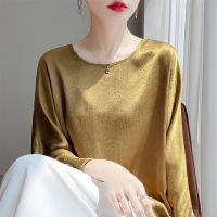 丝绸缎面春夏季新款女装圆领短款宽松大码T恤薄款九分袖上衣背心