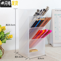 三维工匠北欧简约斜插式笔筒女多功能学生桌面个性办公室化妆刷收纳盒ins 透明9.5*9/20.5h