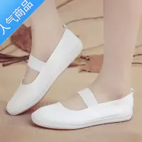 SUNTEK一字牌芭蕾舞鞋女平底白色护士鞋松紧带防滑工作鞋舒适女士小白鞋
