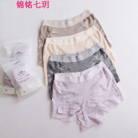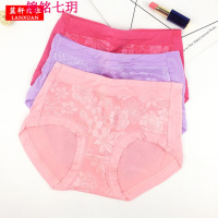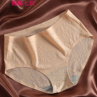 锦铭七玥冰丝镂空一片式性感无痕内裤女 提花蕾丝中腰女士三角裤