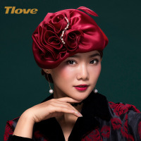 帽子女士秋冬新娘礼帽优雅花朵复古头饰毛呢帽羊毛毡帽