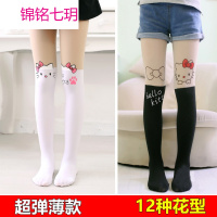 锦铭七玥儿童连裤袜 女童打底裤 可爱猫咪假中筒透肉拼接丝袜子 春秋 薄款