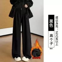 加绒阔腿裤女秋冬季加厚小个子大码西裤直筒黑色高级感垂感西装裤