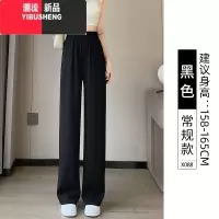 YIBUSHENG冰丝阔腿裤女季薄款2024新款窄版直筒垂感休闲小个子黑色西装裤