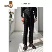 YANXU纯黑色复古感那不勒斯高腰直筒西裤商务深灰休闲裤西装长裤男
