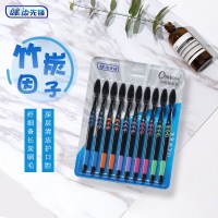 健牌10支装竹炭细毛软毛牙刷成人竹炭家用细毛牙刷男女细软家庭装10只装