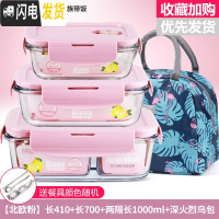 三维工匠微波炉饭盒套装学生分隔玻璃加热碗保鲜盒上班族保温便 [北欧粉]长410+长700+两隔长1000+深火烈鸟包+餐