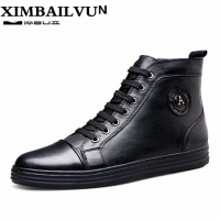 品牌2017秋冬新款马丁靴男靴男士休闲潮流高帮男鞋黑皮靴韩版街头潮板鞋朋克短靴子男黑色
