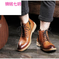 男鞋秋季新款皮面高帮圆头马丁靴时尚英伦风休闲百搭工装运动男靴
