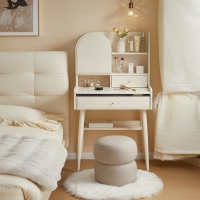 全友家居奶油风梳妆台置物架实木脚小户型卧室床边收纳桌化妆台