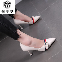 韩版金属扣尖头高跟鞋8CM细跟女鞋2017新款时尚漆皮通勤浅口单鞋