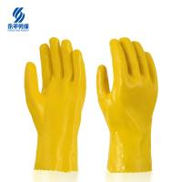 誉丰028黄色工业pvc28厘米耐油防污耐酸碱棉毛浸塑手套 1双装