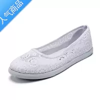SUNTEK牌护士鞋女白色平底软底美容鞋坡跟夏季透气舒适小白鞋